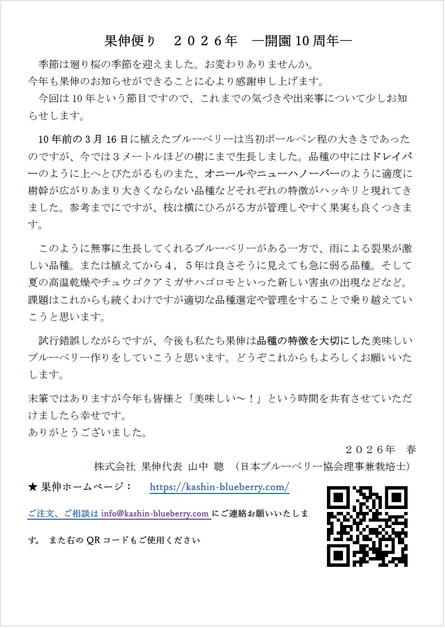 果伸は品種の力を十分発揮させ旬のブルーベリーをお届けすることで、食された方々とささやかですが感動を共有したいと考えています。